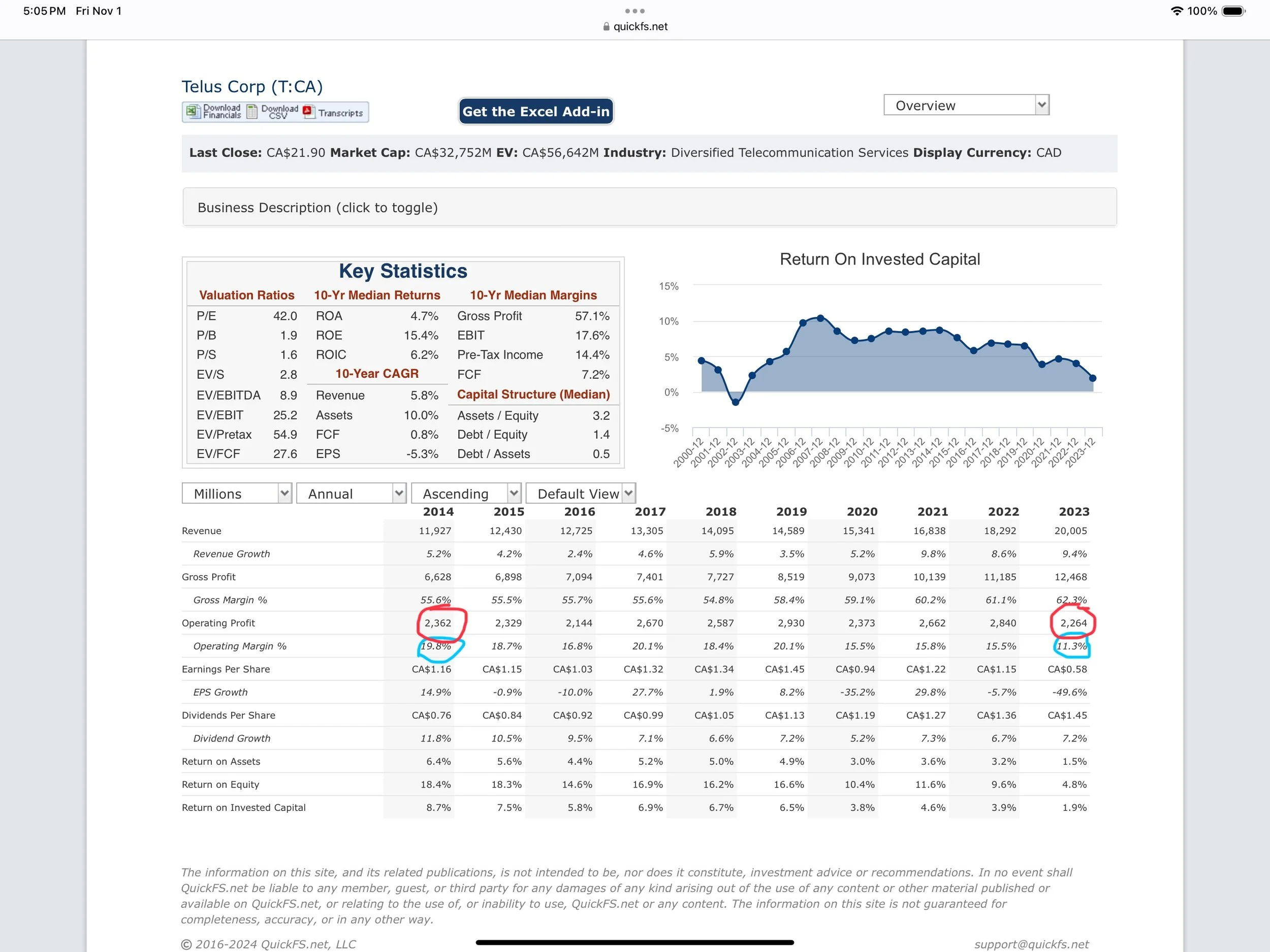 Here is a snapshot of Telus for the last 2 decades..